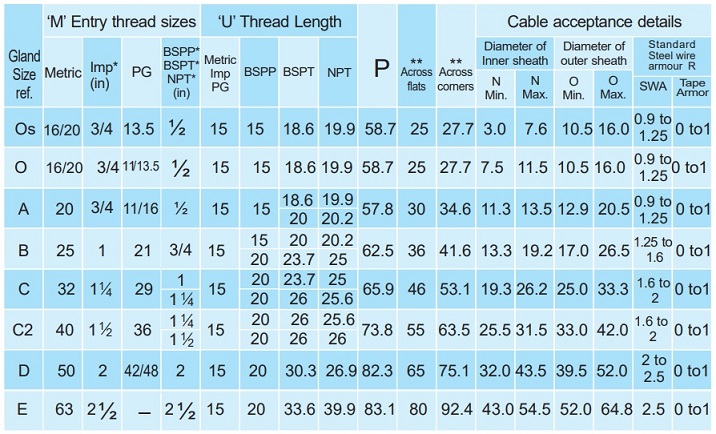 نوع رزوه میتواند Metric (مطابق با استاندارد ASTM D 1418) یا PG (مطابق با استاندارد DIN 40430) و یا INCH (NPT) (مطابق با استاندارد ANSI B1.20.1) باشد.
